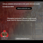 “Bırakın dört yönden şaha kalksın yalnızlık Yeter ki siz unutmayın gümüş kabzalara sinmiş çağları Ve emin siperlerin ardında hırsla soluyan tuğları!”